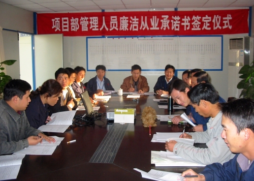 為了加強(qiáng)廉潔建設(shè),規(guī)范工程建設(shè)項目甲、乙雙方的各項活動,保護(hù)甲、乙雙方的合法權(quán)益,最近,三公司鎮(zhèn)江項目部分別與分包單位、全體管理人員簽定了《工程建設(shè)項目廉潔從業(yè)責(zé)任書》和《企業(yè)管理人員廉潔從業(yè)承諾書》。 (潘壽海 司徒健民)