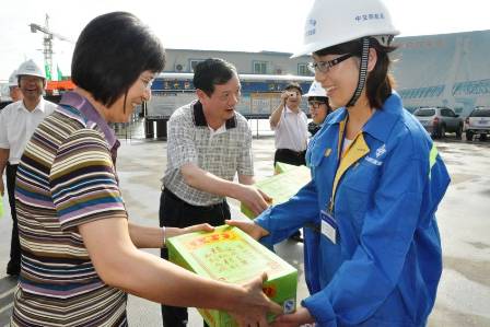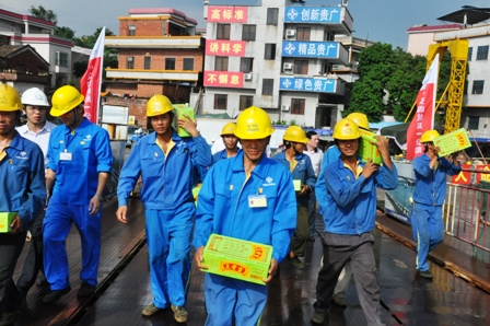 7月30日,廣東省總工會黨組成員、紀檢組組長廖汝捷,省海員工會主席郭開農(nóng)一行,在四航局工會主席肖干生、副主席陳明星的陪同下,到四航局貴廣項目進行慰問三分部,并向在炎炎烈日下仍堅持在生產(chǎn)一線的員工們送上清涼飲料。